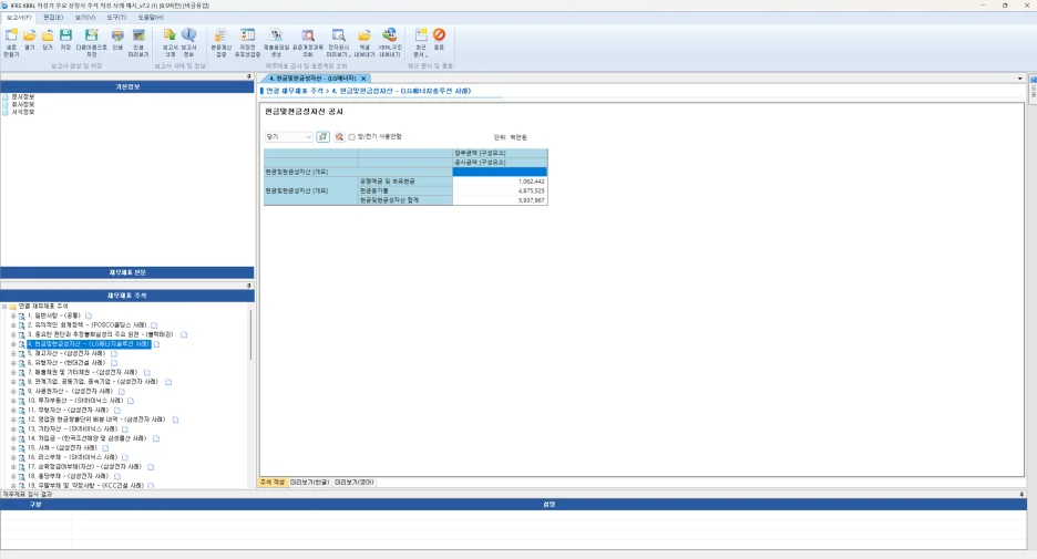 이 또한 금융감독원에서 배포하고 있으며, 편집기 내에서 구조를 만들고 알맞은 정보와 숫자를 입력하여 공시용 XBRL 보고서를 생성합니다.